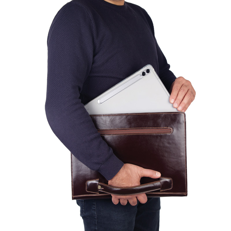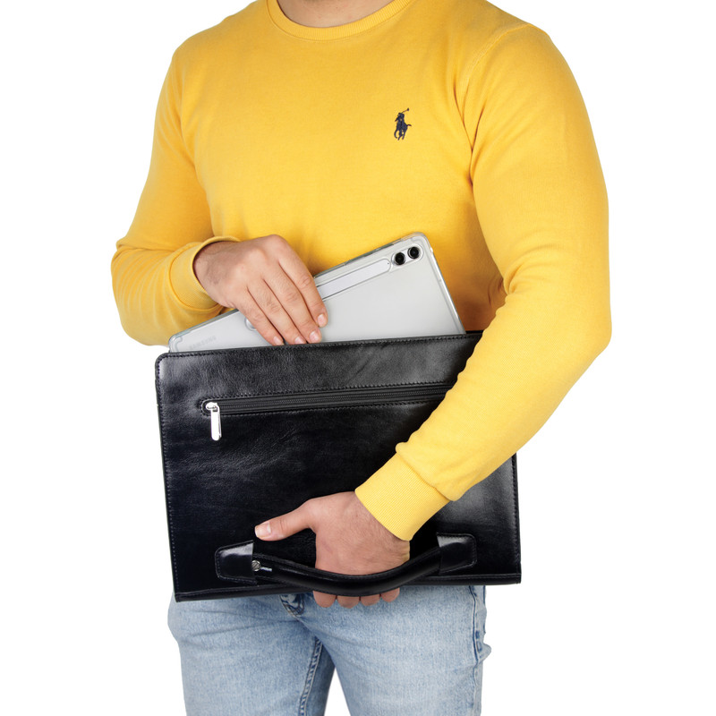 - کیف دستی (فولدر) چرم بارز مدل DF40 - ساخته شده از چرم طبیعی گاوی - یراق آلات ، کتان اعلاء و نخ درجه یک -زیپ دار جهت نگهداری آسان اقلام داخل فولدر - مناسب برای تبلت تا سایز ۱۲.۵ اینچ - مناسب برای خانم ها و آقایان (کارمندان و دانشجویان و دانش آموزان) - جهت تمیز شدن محصول از واکس معمولی استفاده شود. - حتما از تماس آب و نور خورشید (به مدت زیاد) و یا مواد حاوی الکل با محصول جدا خود داری نمایید.