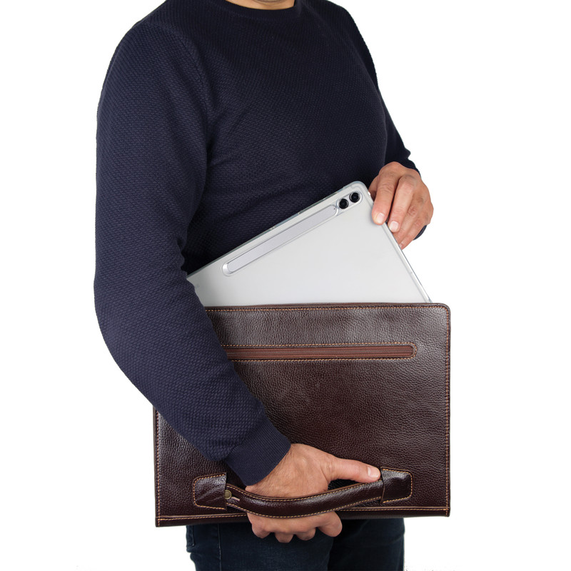 - کیف دستی (فولدر) چرم بارز مدل DF40.1 - ساخته شده از چرم طبیعی گاوی با متریال فلوتر (شرانک) - یراق آلات ، کتان اعلاء و نخ درجه یک -زیپ دار جهت نگهداری آسان اقلام داخل فولدر - مناسب برای تبلت تا سایز ۱۲.۵ اینچ - مناسب برای خانم ها و آقایان (کارمندان و دانشجویان و دانش آموزان) - جهت تمیز شدن محصول از واکس معمولی استفاده شود. - حتما از تماس آب و نور خورشید (به مدت زیاد) و یا مواد حاوی الکل با محصول جدا خود داری نمایید.