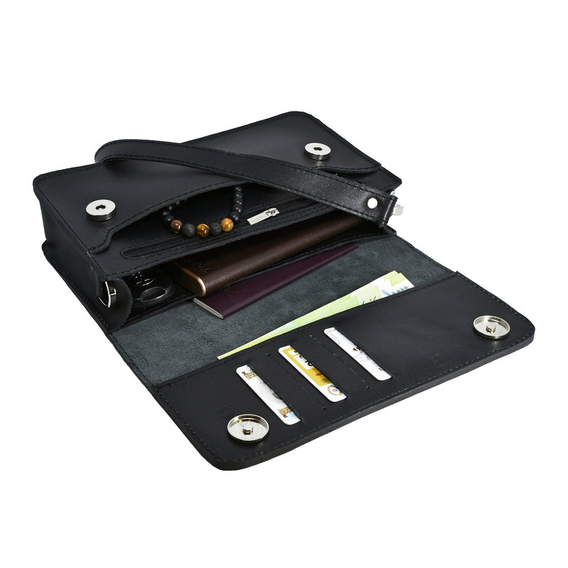همچنین این محصول دارای چهار عدد جیب داخلی که از جنس چرم طبیعی میباشد و یکی از آنها به صورت زیپ بسته میشود.