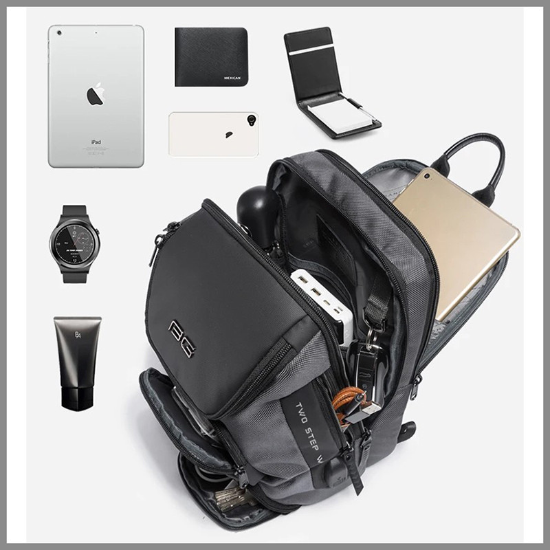 برند معتبر و با کیفیت بنج - ضدآب - طراحی زیبا و استاندارد - دارای محفظه تبلت - دارای درگاه و رابط USB - دارای قفل رمز دار - بسیار جادار - دارای پدهای تنفسی ضد تعریق در قسمت پشت کیف و دسته - زیپهای بسیار با کیفیت و مقاوم - دارای جیبهای متعدد - مناسب برای تبلت 10 اینچ