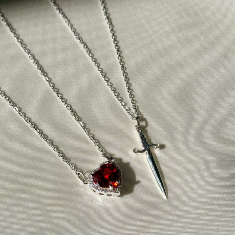 گردنبند مدل دوستی قلب و شمشیر بسته 2 عددی