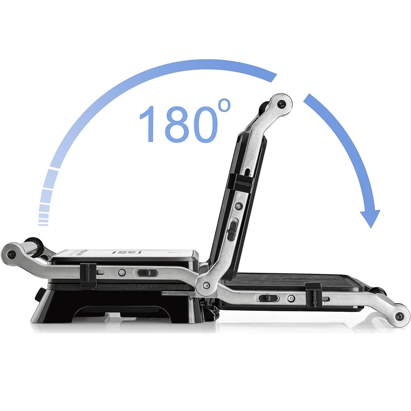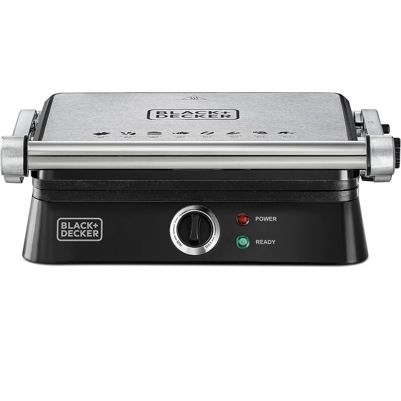 توان 1400 وات، جنس بدنه استیل ضد زنگ، دارای سینی چکه گیر، صفحات 180 درجه، صفحات جداشونده، جنس صفحات آلومینیوم فشرده شده با روکش نچسب، تعداد تنظیمات دما 5 نوع کنترل، دارای چراغ نشانگر ، نوع کنترل چرخشی، کنترل دمای متغیر برای انتخاب دمای بهینه، پخت و پز کامل / کباب کردن انواع مختلف گوشت، ماهی و سبزیجات، صفحات آلومینیومی دایکاست قابل جدا شدن برای سهولت در تمیز کردن