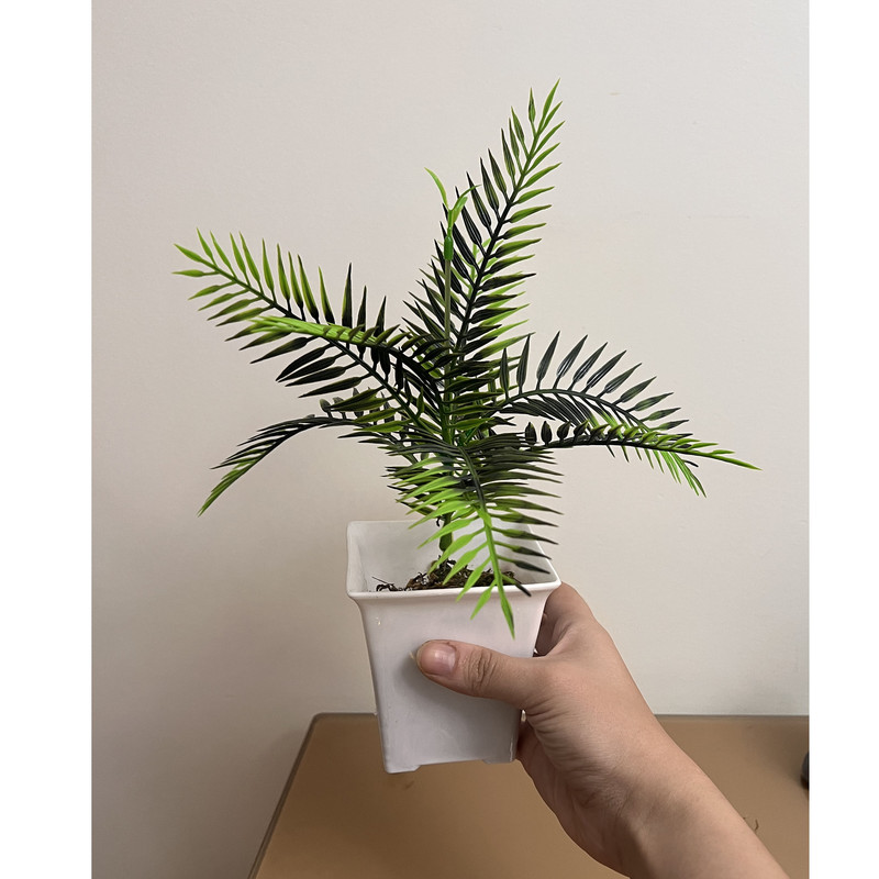 گلدان به همراه گل مصنوعی مدل برگ سوزنی مربعی321