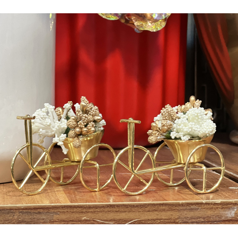 گلدان به همراه گل مصنوعی مدل دوچرخه مینیاتوری مجموعه 2 عددی