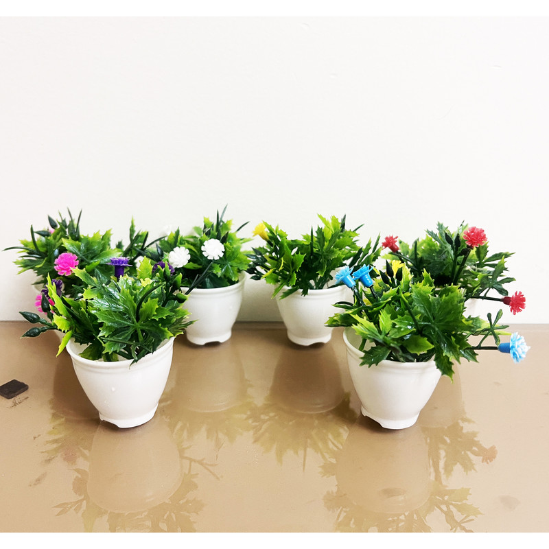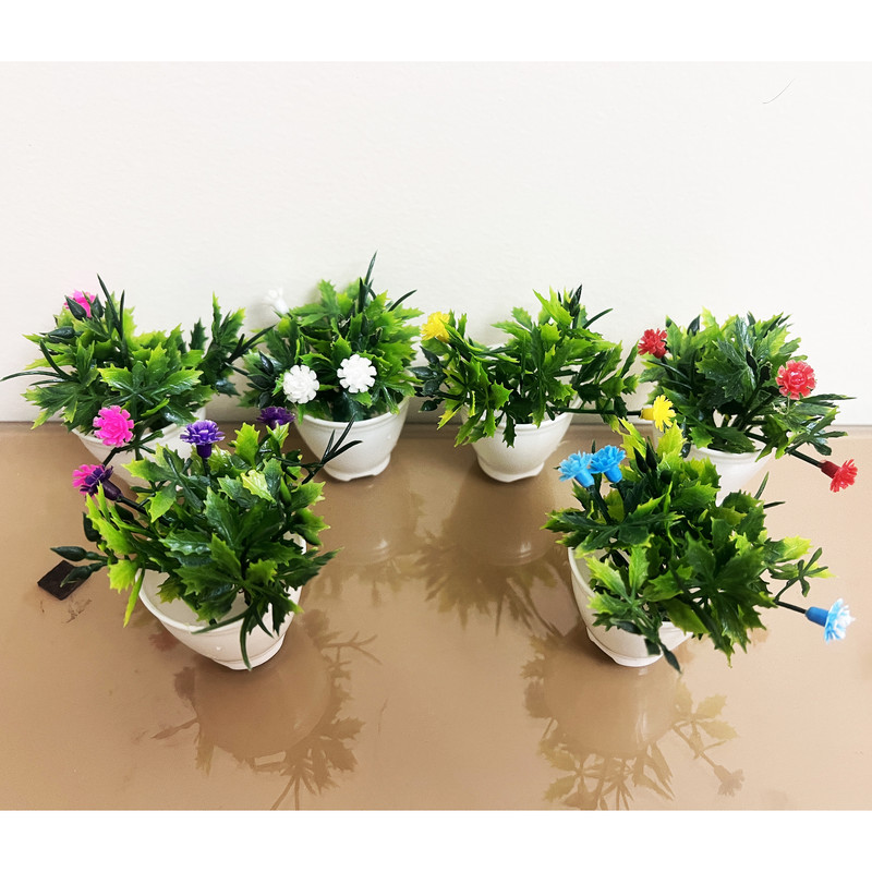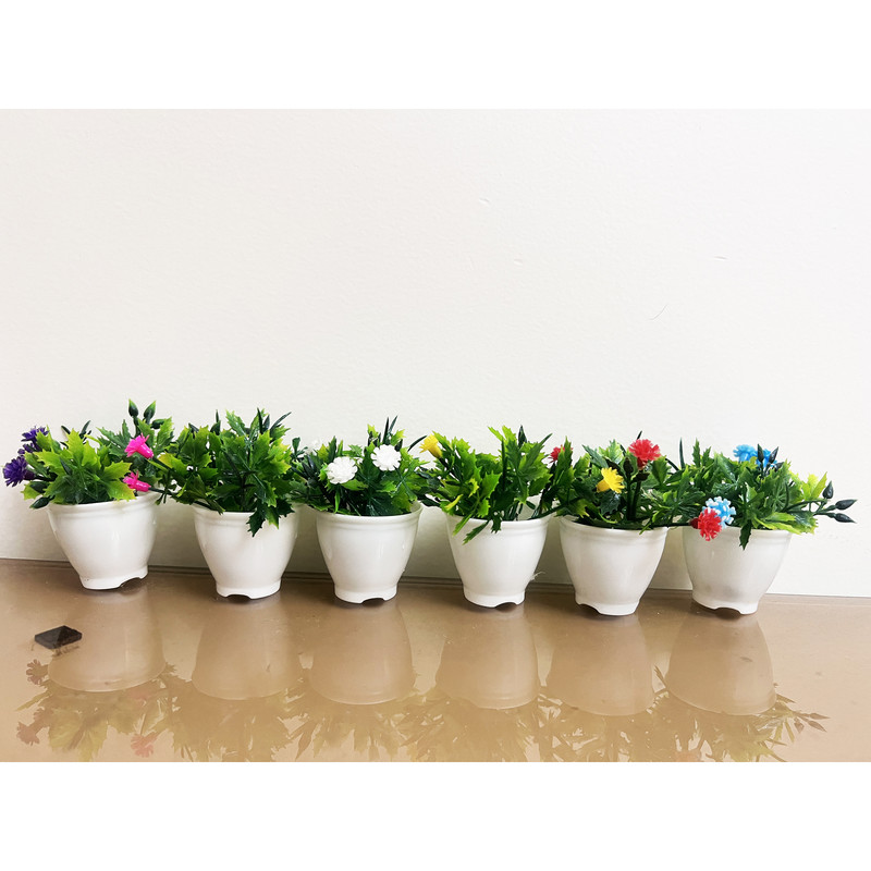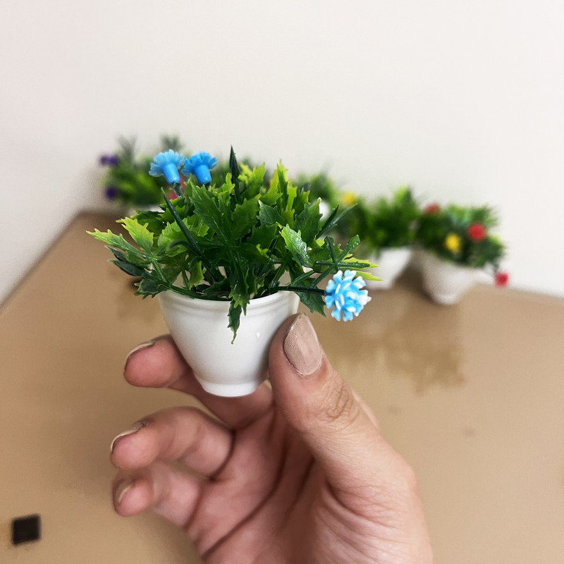 گلدان به همراه گل مصنوعی مدل مینی رزی مجموعه 6 عددی