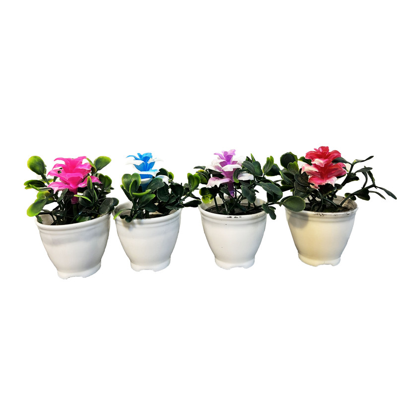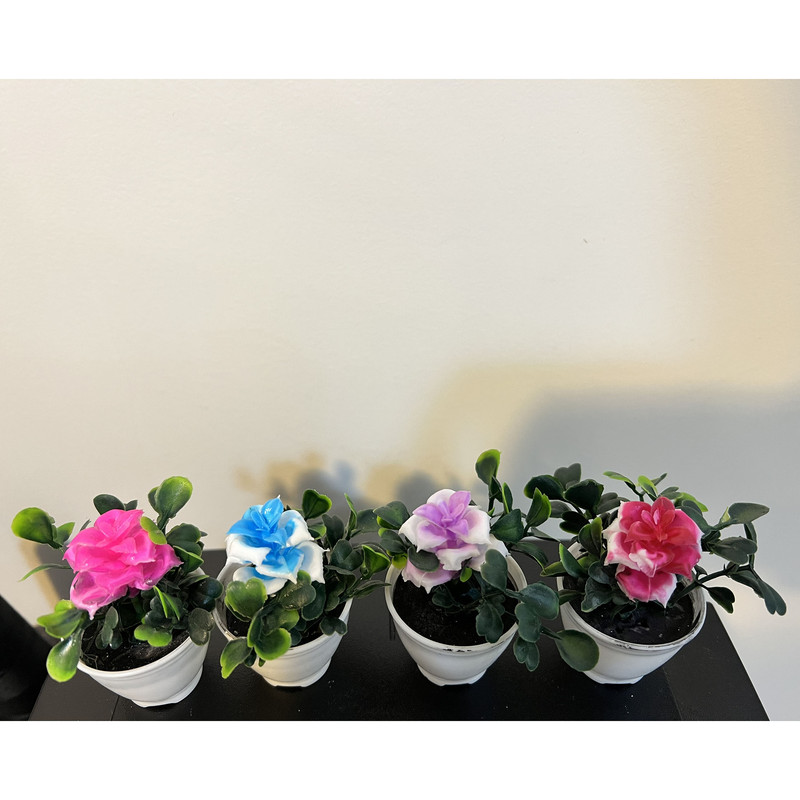 گلدان به همراه گل مصنوعی مدل گل رز مجموعه 4 عددی