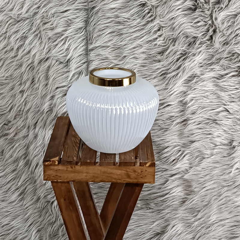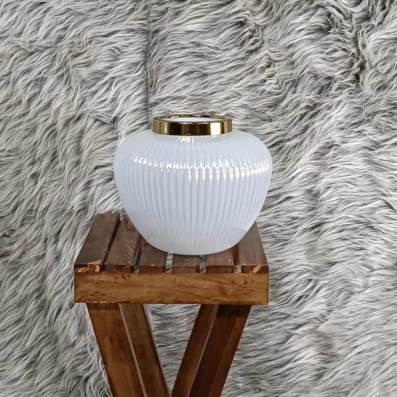 جنس طوقه لبه گلدان فلزی است و با آبکاری کروم رنگ آمیزی شده است.