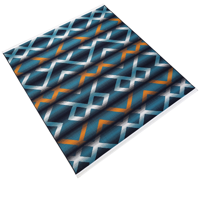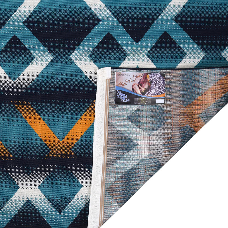 گلیم ماشینی دنیای فرش مدل لوزی سرمه ای کد 1913