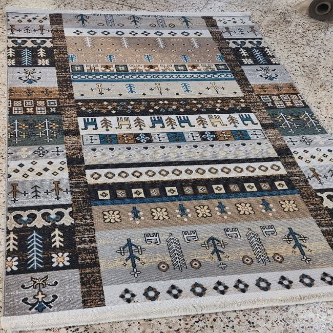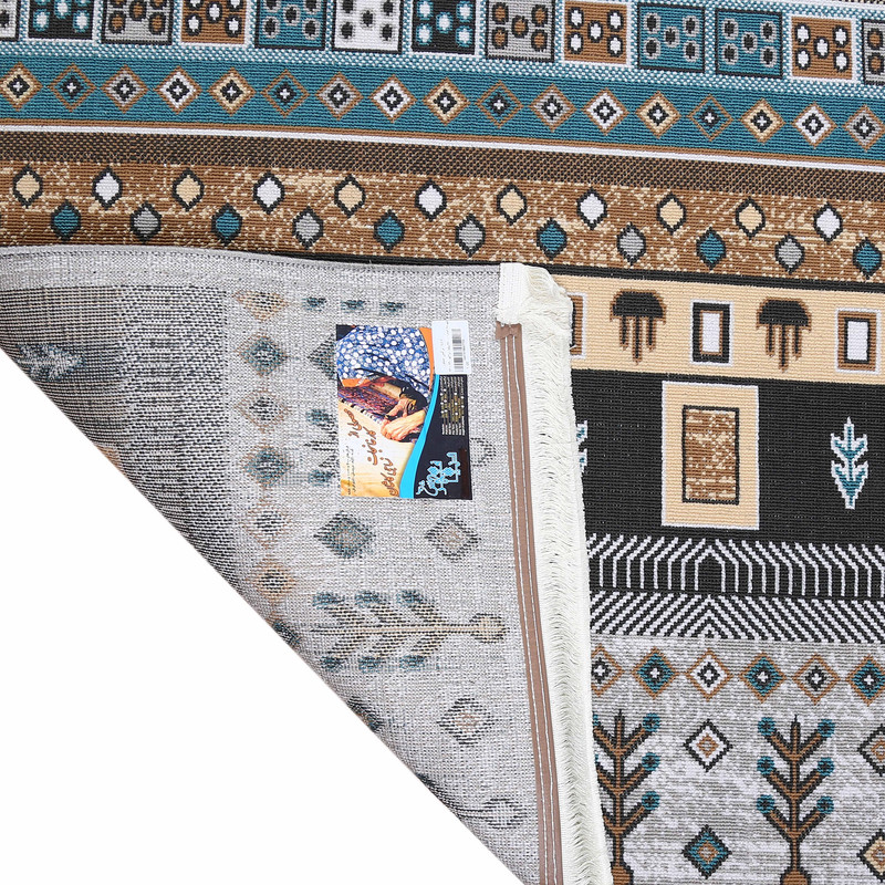گلیم ماشینی دنیای فرش مدل نرگس نسکافه ای کد 2025