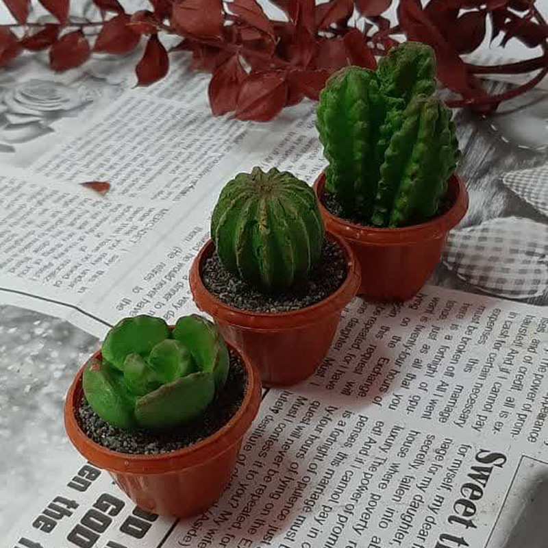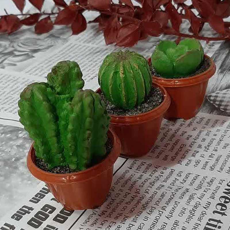 گل مصنوعی مدل کاکتوس میناتوری مجموعه 3 عددی