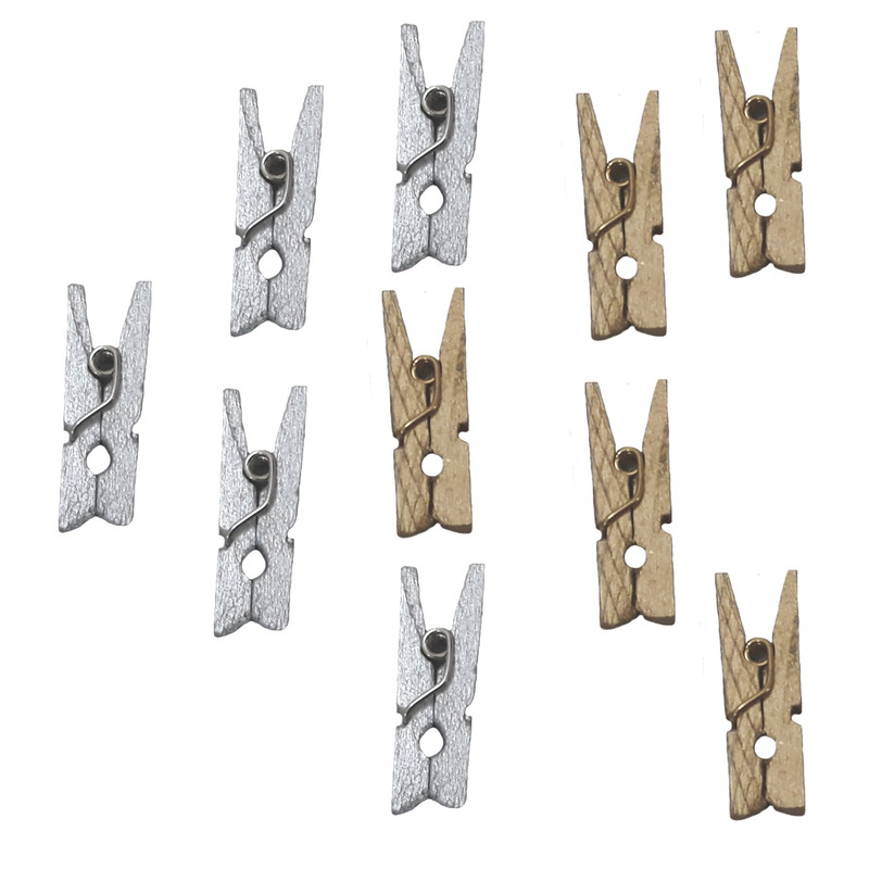 10 عدد گیره چوبی 2.5 سانتی متر طلایی و نقره ای