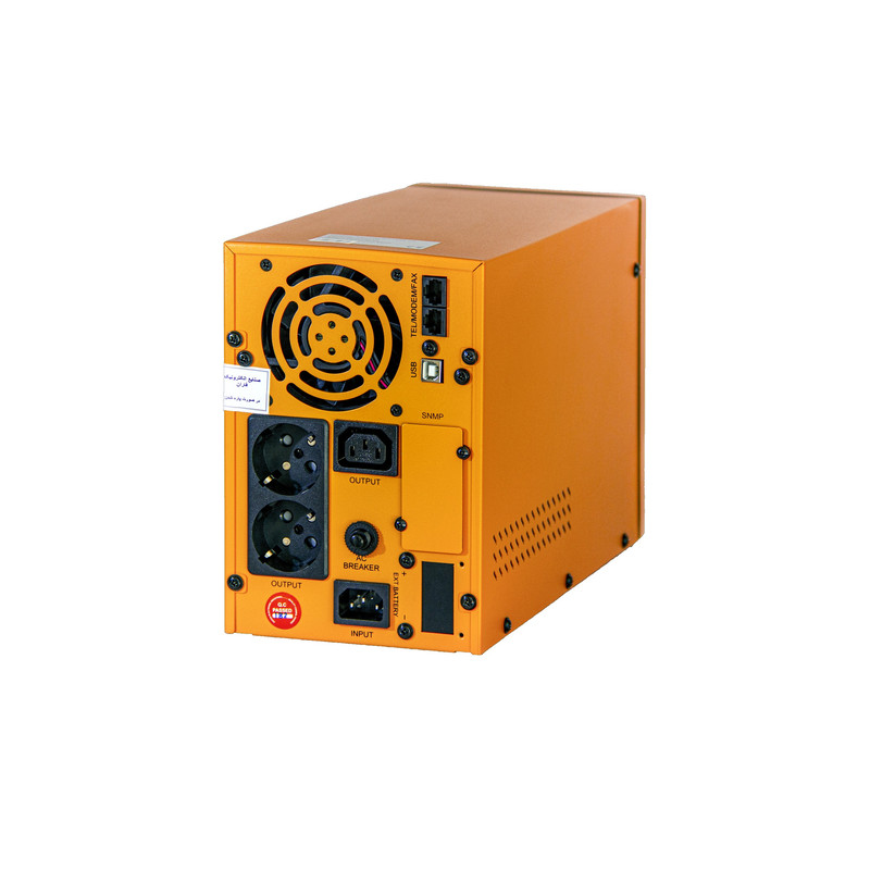 تکنولوژی: Line Interactive / کنترل: ریزپردازنده دیجیتالی / تثبیتکننده ولتاژ: AVR / مدیریت باتری: ABM (مدیریت هوشمند باتری) / تشخیص فرکانس: خودکار / شکل موج خروجی: کاملاً سینوسی / کاربرد: تجهیزات خانگی، تجاری، اداری، سیستمهای امنیتی، دربهای اتوماتیک، تلویزیون، کنسولهای گیم، آکواریوم و روشناییهای کممصرف / توان اسمی: 1500VA / توان مفید: 1200W / ضریب توان خروجی (PF): 0.8 / فاز ورودی: تکفاز / فاز خروجی: تکفاز / جریان ورودی: 6.8A / ولتاژ ورودی: 165-280V AC / فرکانس ورودی: 50/60Hz ±5% ~15% / ولتاژ خروجی: 200/220/230/240V ±5% / فرکانس خروجی: 50/60Hz ±0.3% / نوع خروجی: دو پریز استاندارد دوشاخه + یک پریز Back to Back / وضعیت باتری: داخلی / نوع باتری: سیلد اسید 12V - 9Ah / تعداد باتری: 2 سلول / ولتاژ DC: 24V / سیستم حفاظتی: نوسانات برق شهر، اتصال کوتاه، تخلیه بیش از حد باتری، افزایش ناگهانی بار، حفاظت از خط تلفن/فکس/مودم/شبکه / درگاههای ارتباطی: USB + RJ45